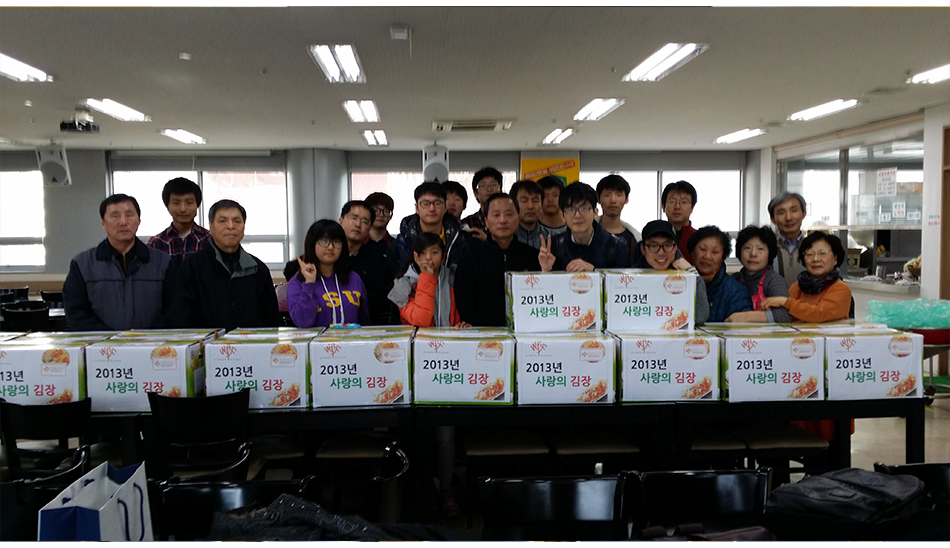 매년 겨울 약 800포기의 김장을 자원봉사자들의 손으로 직접 담그어 배달합니다.