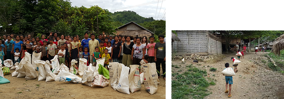 쌀과 이불, 댕기모기로부터 보호하기 위한 모기장을 지원하였습니다.